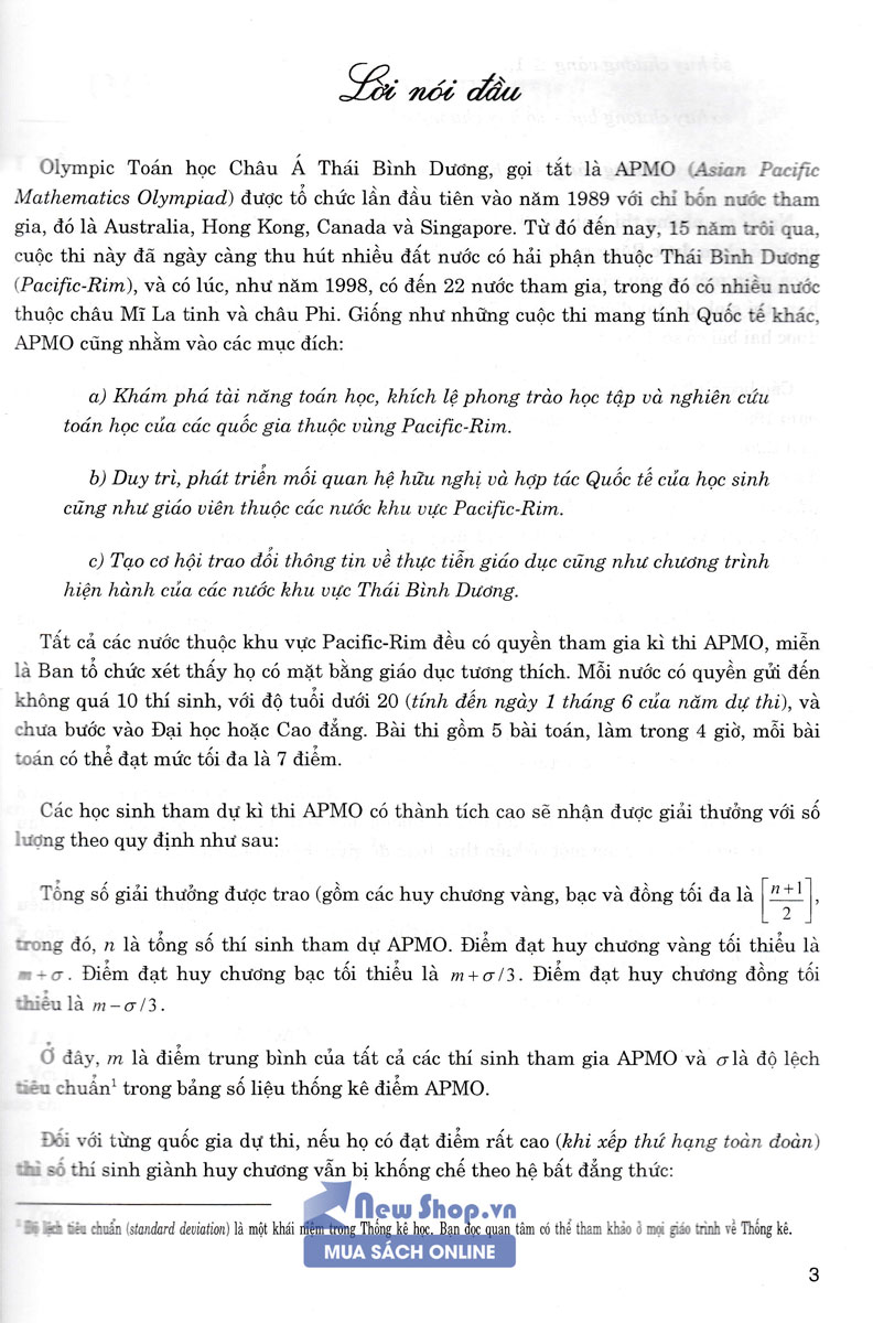 Tuyển Tập Olympic Toán Tại Các Nước Châu Á - Thái Bình Dương được biên soạn dưới dạng song ngữ Việt – Anh này sẽ đem đến cho bạn đọc nhiều điều hữu ích, nhất là các em học sinh giỏi Toán THPT. Nội dung chính của tập sách này là các bài toán APMO và các bài toán trích từ các cuộc thi vô địch Quốc gia hoặc tuyển chọn học sinh giỏi tại một số nước có nền Toán học phát triển cao tại châu Á.