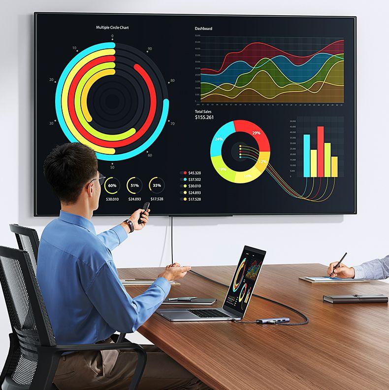 MÔ TẢ SẢN PHẨM Cổng loại C 11 trong 1: Tương thích HDMI + USB3.0 * 1 + USB2.0 * 3 + PD 87W + TF + SD + 100M RJ45 + AUX +