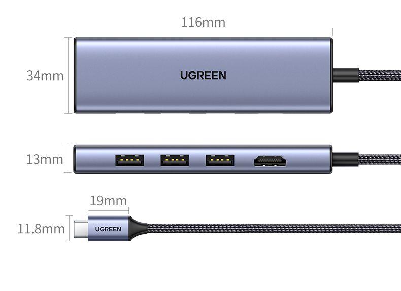 - Sản phẩm chính hãng Ugreen - Bộ chuyển đổi 6 trong 1 tiện dụng - Chuyển đổi tín hiệu USB-C sang HDMI - 3 cổng USB-A 3.0 - Hỗ trợ xuất hình ảnh độ