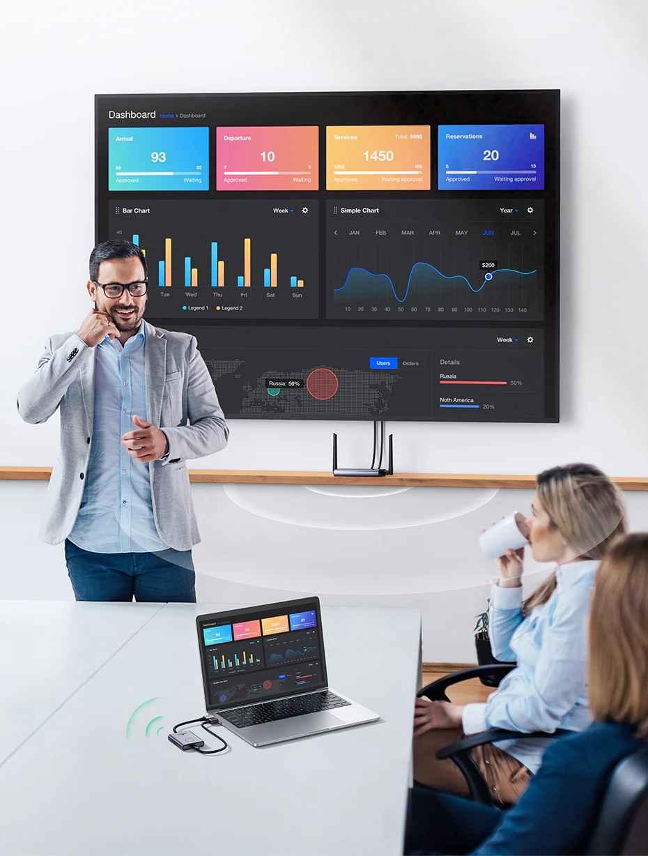 Bộ chuyển đổi USB-C sang HDMI và VGA Lention C51sHV - Cổng chính: USB-C - Cổng ra HDMI (4K 30Hz) hỗ trợ độ phân giải lên đến 3840x2160 @ 30Hz - Cổng ra VGA (1080P