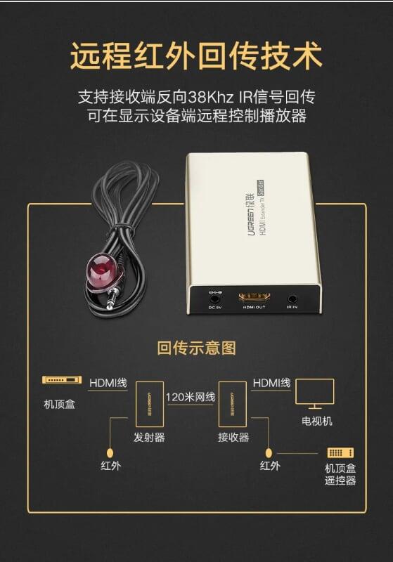 Mua tại TiktokUgreen 40280 Hdmi Single Extender Transmitter 120M By Cat5E 6 With Ir Control Zinc Alloy Mm116