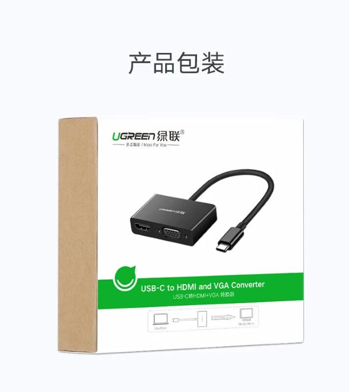 Bộ chuyển đổi TYPE C sang HDMI + VGA vỏ bọc nhựa ABS Ugreen MM123 30843