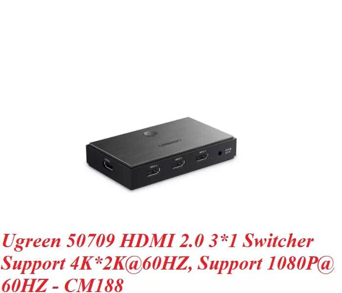 Ugreen 50709 Hdmi 2.0 3 In 1 Out Switcher Support 4K*2K@60Hz 1080P Cm188 1. Hỗ trợ âm thanh 7.1 và 5.1 - 192KHz 24bit 2. Hỗ trợ cáp HDMI đầu vào và ra 15M (tổng
