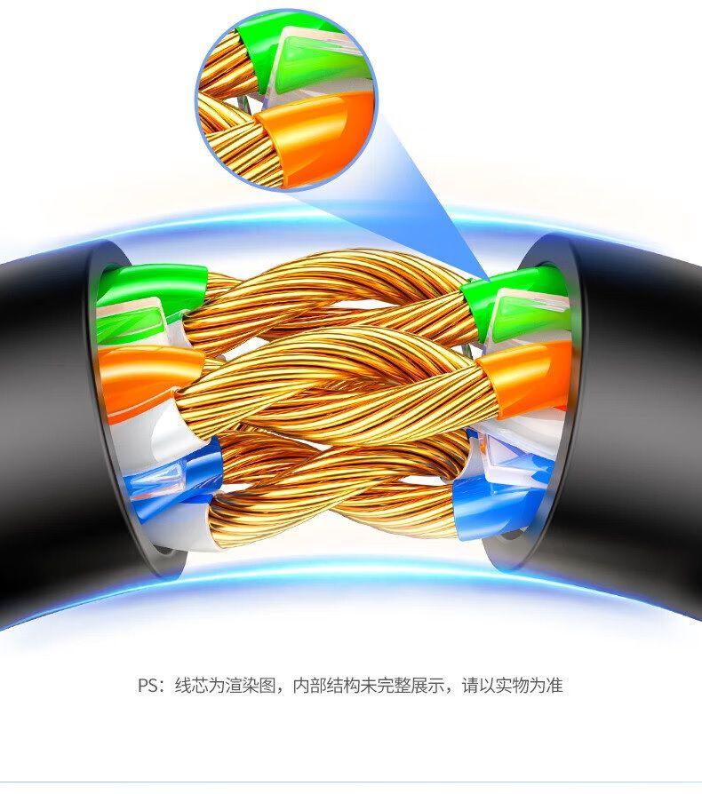 1. Data transfer rate: 10G 2. Frequency: 600MHz 3. 4 shielded twisted pair (U/FTP) of copper wires 4. Pure Copper Core