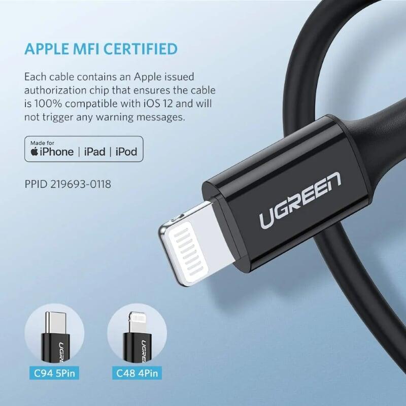 1. Hãng : Ugreen 2. Mã sản phẩm : 60760-US304 3. Màu sắc: Đen 4. Chiều dài cáp : 1.5M 5. Đầu vào : USB-C 2.0 6. Đầu ra : Lightning 7. Tốc độ truyền