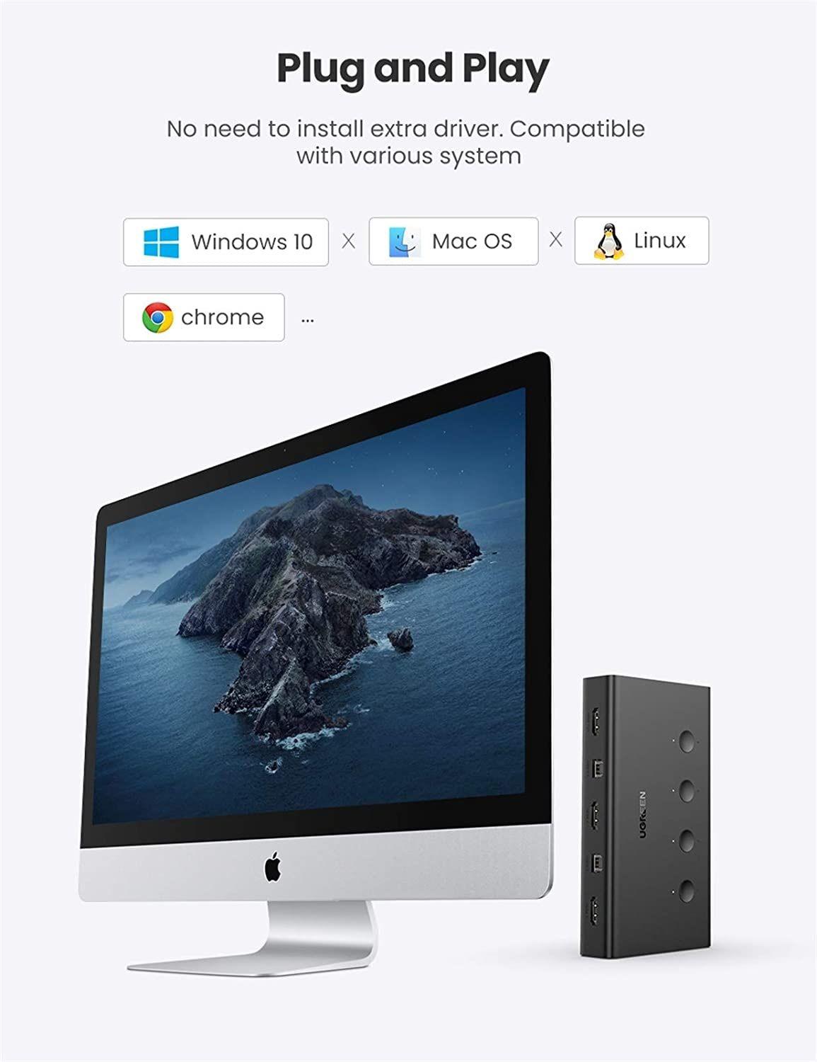 - The Ugreen 70439 HDMI KVM Switch is used to control 4 computers using a single keyboard and mouse via USB 2.0.