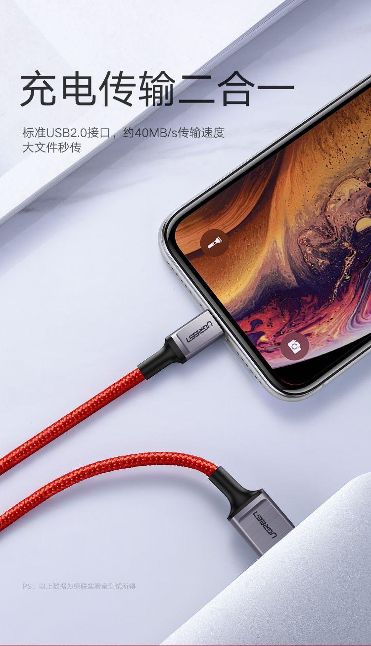 Ugreen 40987 2M MFI Lightning to USB cable cáp Aluminum Case + Braid US199 1. Function: Charging + Data transmission 2. Length: 2M 3. Color: Black 4. Compatible Brand: Apple iPhones Lightning 8 Pin Devices