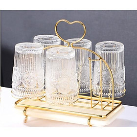 Combo Bộ 6 cốc thủy tinh cao cấp kèm giá úp tròn có khay hứng Combo gồm: 1 bình 6 cốc cốc 1 giá úp hươu 1 khay vương miện