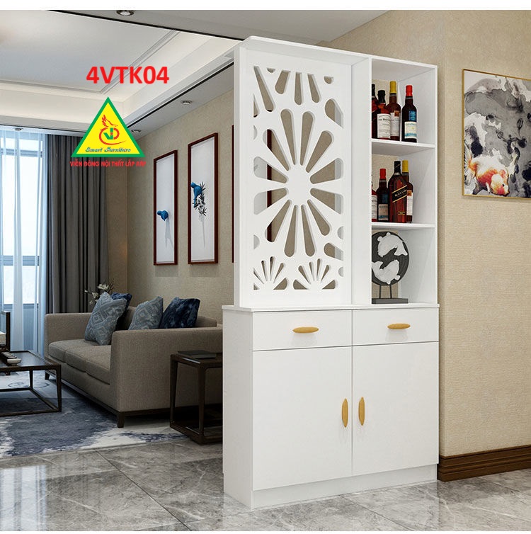 ✨Vách ngăn phòng khách, vách ngăn tủ kệ bằng gỗ 4VTK04 - Nội thất lắp ráp Viendong adv