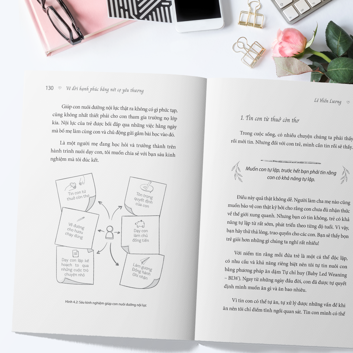 Di sản quý giá nhất mà tất cả các bậc cha mẹ, bất kể giàu hay nghèo, đều có thể để lại cho con không phải quyền lực hay tài lực, mà là nội lực. Hiểu được điều đó nên ngay từ nhỏ, tác giả đã chú trọng giúp con hình thành tư duy đích đến, thói quen sống có kế hoạch và sự tự tin ra quyết định, qua đó đúc kết được sáu kinh nghiệm sau:
