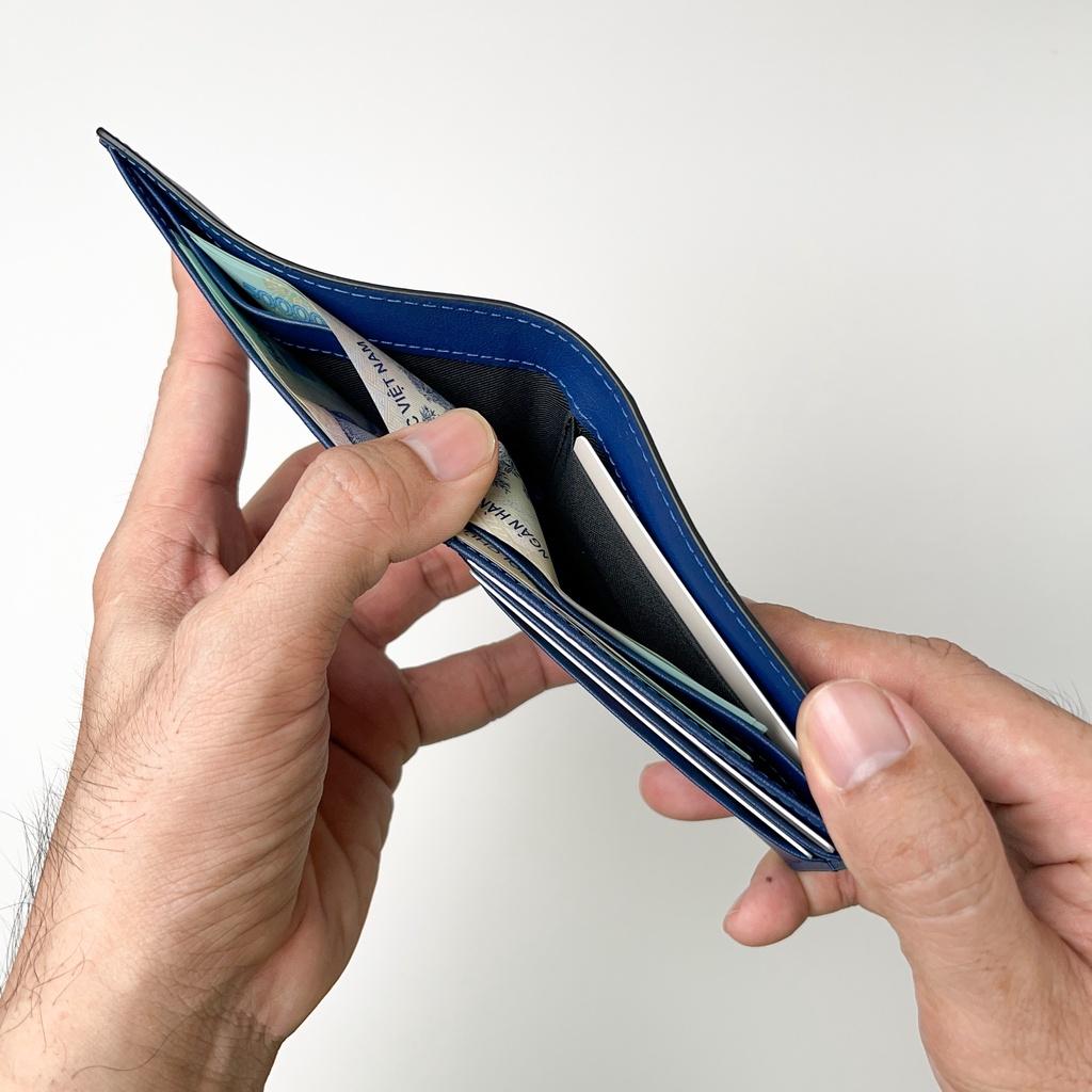 . Để vừa 20 tờ tiền thẳng, 4-6 thẻ atm, giấy tờ xe mới, cmt cũ/mới.