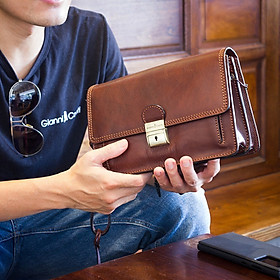 ✨Ví Da Nam cầm tay Gianni Conti Italy 912132DBR - Nâu