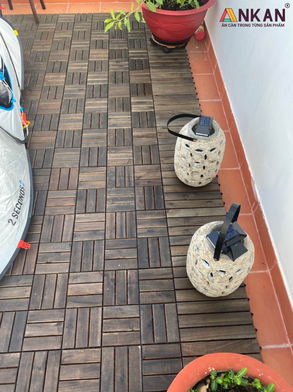 Mua tại TiktokVỉ Gỗ Lót Sàn Ban Công Thương Hiệu ANKAN Gu Màu Đen 12 Nan là một trong những sản phẩm lót sàn ban công phổ biến hiện nay. Khu vực thường sử dụng sản phẩm này là khu Thảo Điền. Ở đây, người nước ngoài hay chọn màu đen để trang trí ban công của mình. Chúng ta sẽ cùng nhau tìm hiểu về vỉ gỗ 12 nan độc đáo này nhé. ƯU ĐIỂM VỈ GỖ LÓT SÀN NAN 12 MÀU ĐEN