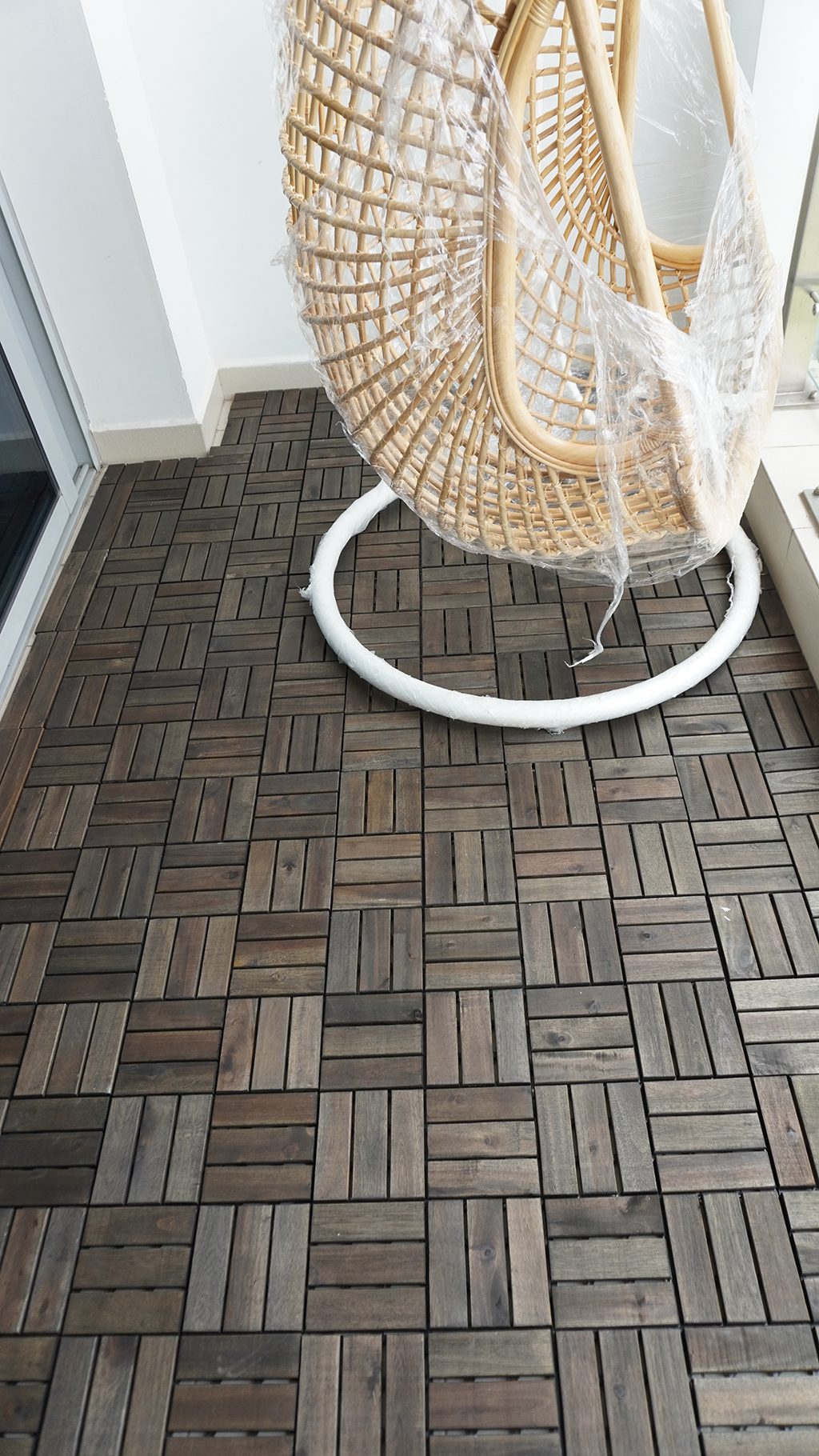 - Đặc điểm nổi bật của vỉ gỗ là có thể thoát nước tốt nhờ hệ thống đế nhựa bên dưới. Do đó có thể lắp trên nơi thoát nước trên ban công Sau khi