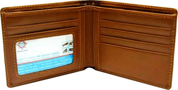 Ví/Bóp nam Huy Hoàng da bò viền chỉ màu nâu 2130