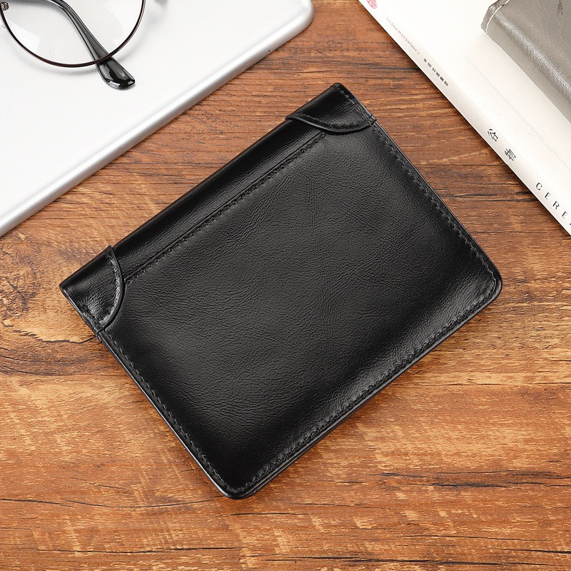 Ví mini nam da bò sáp ngựa điện Crazyhorse V125 cao cấp, bóp đựng thẻ da thật, đường chỉ tinh tế, ví nam nhỏ gọn dáng đứng,