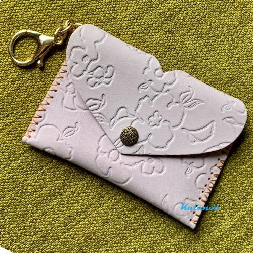 Kalanos - KMKN40-Hong– ví nữ mini móc khóa nhỏ gọn da bò handmade may tay cao cấp & độc đáo, nút bấm loại tốt độc đáo, nắp gập cách điệu hình trái tim, màu hồng tím nhạt, hàng đẹp