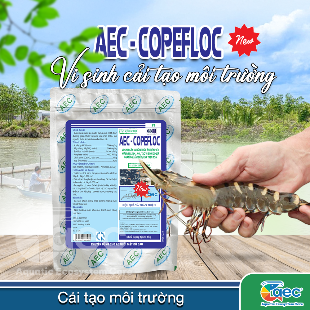 AEC Copefloc – Vi sinh đa năng gây màu nước, tạo thức ăn tự nhiên cho tôm hiệu quả! ‣ Au My AEC