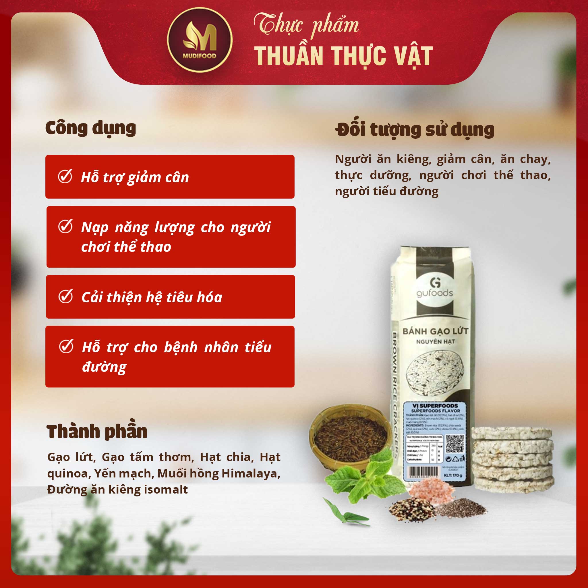 ✨[Vị Superfoods] - Bánh Gạo Lứt GUfoods 170g Mix Siêu Hạt Chia + Quinoa + Yến Mạch - Ăn Kiêng, Tập Gym, Thực Dưỡng, Ăn Vặt Healthy, Không Chiên Dầu