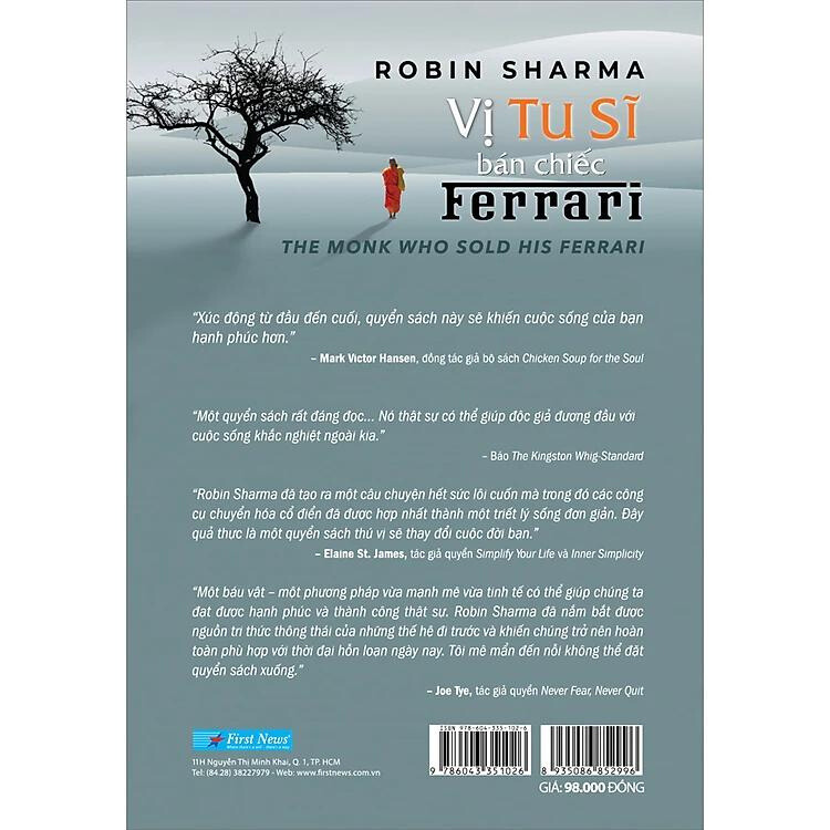 I. GIỚI THIỆU Vị tu sĩ bán chiếc Ferrari Cuốn sách cho những người khát khao theo đuổi đam mê Vị Tu Sĩ Bán Chiếc Ferarri không phải là một cuốn sách xa lạ, cuốn sách này là một trong những ấn phẩm kinh điển của thế giới về đề tài truyền cảm hứng, theo đuổi lý tưởng sống, và hướng về một cuộc sống hạnh phúc. Đây cũng là cuốn sách đầu tiên mà tác giả, nhà diễn thuyết nổi tiếng thế giới Robin Sharma chấp bút. Cuốn sách gây được tiếng vang khi xuất bản năm 1997 và bán được hơn 3 triệu bản vào năm 2013. Từng được xuất bản và bán chạy ở Việt Nam với cái tên Tìm về sức mạnh vô biên, trong lần tái bản này, Vị tu sĩ bán chiếc Ferrari là phiên bản bổ sung, hoàn thiện và tiếp tục là cuốn sách kinh điển về đề tài truyền cảm hứng, theo đuổi lý tưởng sống, hướng tới cuộc sống hạnh phúc của tác giả Robin Sharma. Ngay từ năm 1997, Vị tu sĩ bán chiếc Ferrari đã nhanh chóng trở thành hiện tượng và nằm trong danh sách best-seller, bán ra hơn 4 triệu bản tại 50 quốc gia trên khắp thế giới. Điều đặc biệt, khi đó Robin Sharma chỉ là một tác giả trẻ chưa có tên tuổi. Vậy, tại sao cuốn sách này lại có sức hấp dẫn với bạn đọc trên toàn thế giới? Vị tu sĩ bán chiếc Ferrari kể về Julian Manter, một luật sư dưới con mắt xã hội là một người đứng trên đỉnh cao danh vọng: là “ngôi sao” trong ngành luật, thu nhập lên tới bảy con số, sở hữu một căn biệt thự tráng lệ, một chiếc máy bay riêng và một chiếc Ferrari màu đỏ bóng loáng đáng ngưỡng mộ. Nhưng ít ai biết, trong nội tâm sâu thẳm Julian lại là một con người đầy đau khổ, căng thẳng. Bởi đằng sau cuộc sống “lung linh” của anh những dấu hiệu của sự sụp đổ trong niềm vui và ý nghĩa sống: liên tục bị cuốn vào công việc, vào một vòng xoáy không thể dừng lại; như anh nói “lúc nào cũng có một vụ kiện “khủng” đang chờ sẵn, quy mô vụ sau, lớn hơn vụ trước”. Và cuối cùng, trong một vụ kiện, Julian đột quỵ và nhập viện. Để rồi ngay khi xuất viện, Julian đã có một quyết định là bước ngoặt thay đổi cuộc đời. Anh bán tất cả tài sản của mình, trong đó có chiếc xe Ferrari - niềm tự hào của mình, và bắt đầu hành trình đến Ấn Độ để gặp gỡ các nhà hiền triết Sivana. Qua đó, anh dần “lột xác” và tìm lại chính mình, trở thành một con người thành công, sống một cuộc đời ý nghĩa và để lại di sản trong đời sống. Vị tu sĩ bán chiếc Ferrari tiết lộ những minh triết cổ xưa, hợp nhất chúng lại thành một triết lý sống đơn giản. Đó là phương cách làm chủ tâm trí, theo đuổi mục đích sống, sống có kỷ luât, quý trọng thời gian, cống hiến hết mình, trân trọng hiện tại… Cuốn sách này đặc biệt có ý nghĩa, khi được viết bởi chính những chiêm nghiệm của tác giả Robin Sharma. Bởi ông cũng chính là một luật sư, từ bỏ nghề nghiệp của mình vào năm 25 tuổi - thời điểm viết nên cuốn sách, rồi đạt được thành công vang dội và cuộc sống viên mãn sau đó. Thông qua Vị tu sĩ bán chiếc Ferrari, Robin Sharma gửi gắm thông điệp: Mỗi người đều có khả năng làm chủ vận mệnh của chính mình. Những nhiệm vụ chúng ta phải thực hiện không hề vượt quá khả năng của ta, và những vất vả, khổ đau mà nó mang lại cũng không quá sức chịu đựng của ta. Chỉ cần vững tin với lý tưởng và ý chí bất khuất của bản thân, chúng ta chắc chắn sẽ thành công. Đây là một câu chuyện đầy cảm hứng cung cấp bạn đọc cách sống can đảm, cân bằng, phong phú và nhiều niềm vui hơn, là món quà cho bất cứ ai muốn chinh phục ước mơ của mình. Người nổi tiếng nhận xét về cuốn sách “Xúc động từ đầu đến cuối, quyển sách này sẽ khiến cuộc sống của bạn hạnh phúc hơn” - Mark Victor Hansen, đồng tác giả bộ sách nổi tiếng Chicken soup for the soul “Robin Sharma đã tạo ra một câu chuyện hé sức lôi cuốn mà trong đó các công cụ chuyển hóa cổ điển đã được hợp nhất thành một triết lý sống đơn giản. Đây quả thực là một quyền sách thú vị sẽ thay đổi cuộc đời bạn” – Elaine St. James, tác giả quyển Simplify your life và Inner Simllicity “Một báu vật – một phương pháp vừa mạnh mẽ vừa tinh tế có thể giúp chúng ta đạt được hạnh phúc và thành công thật sự. Robin Sharma đã nắm bắt được nguồn tri thức thông thái của những thế hệ đi trước và khiến chúng trở nên hoàn toàn phù hợp với thời đại hỗn loạn ngày nay. Tôi mê mẩn đến nỗi không thể đặt quyền sách xuống” – Joe Tye, tác giả quyển Never Fear, Never Quit Báo chí nói gì về cuốn sách này Cuốn sách là “Những nguyên tắc đơn giản để khải mở tiềm năng của con người” –The Daily News “Quyển sách tuyệt vời về chủ đề phát triển cá nhân… Nó chứa đựng những thông điệp sâu sắc về các khái niệm chính yếu vốn giúp mang đến sự cân bằng, quyền kiểm soát, và tính hiệu quả cao hơn trong cuộc sốn