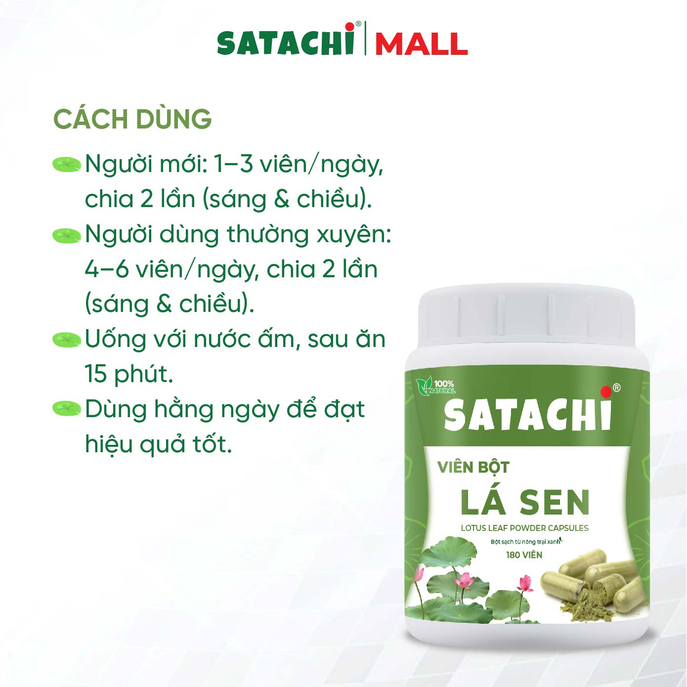 Viên Bột Lá Sen Nguyên Chất SATACHI – 100% Lá Sen – Dạng Viên Tiện Lợi – Hộp 180 viên