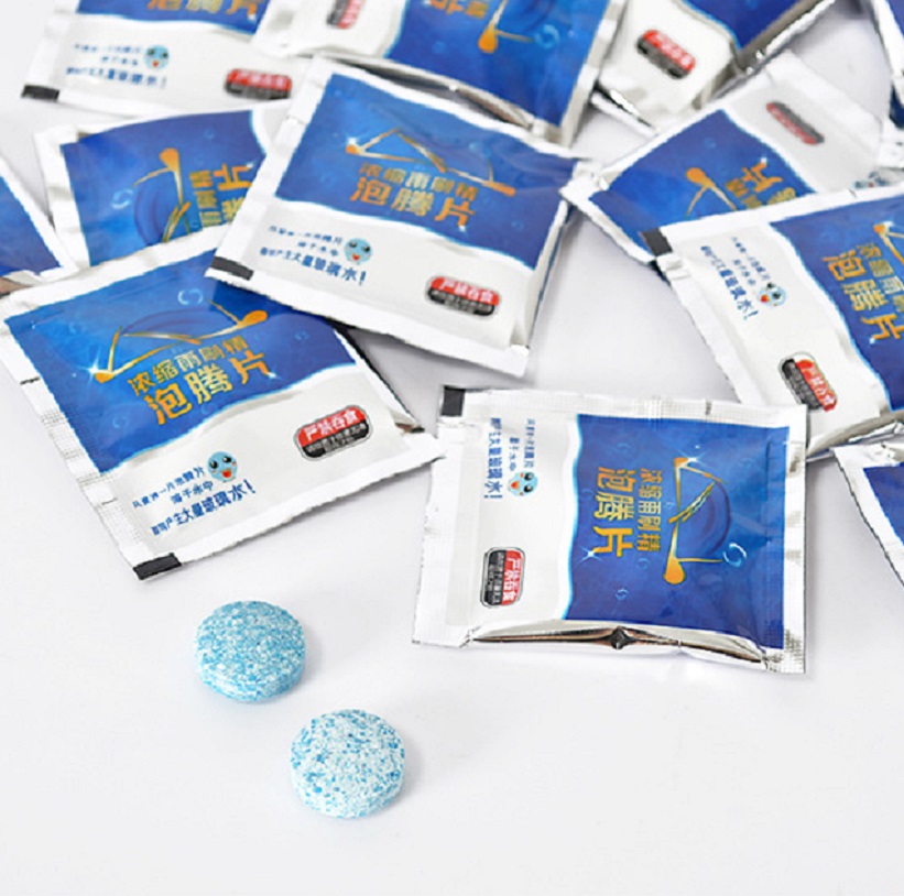 (Sự khác biệt rõ rệt trước và sau khi sử dụng) (Viên sủi nồng độ cao, không để lại cặn) Thành phần chính là Natri bicarbonate Citric Acid Surfactant, khi gặp nước sẽ xảy ra