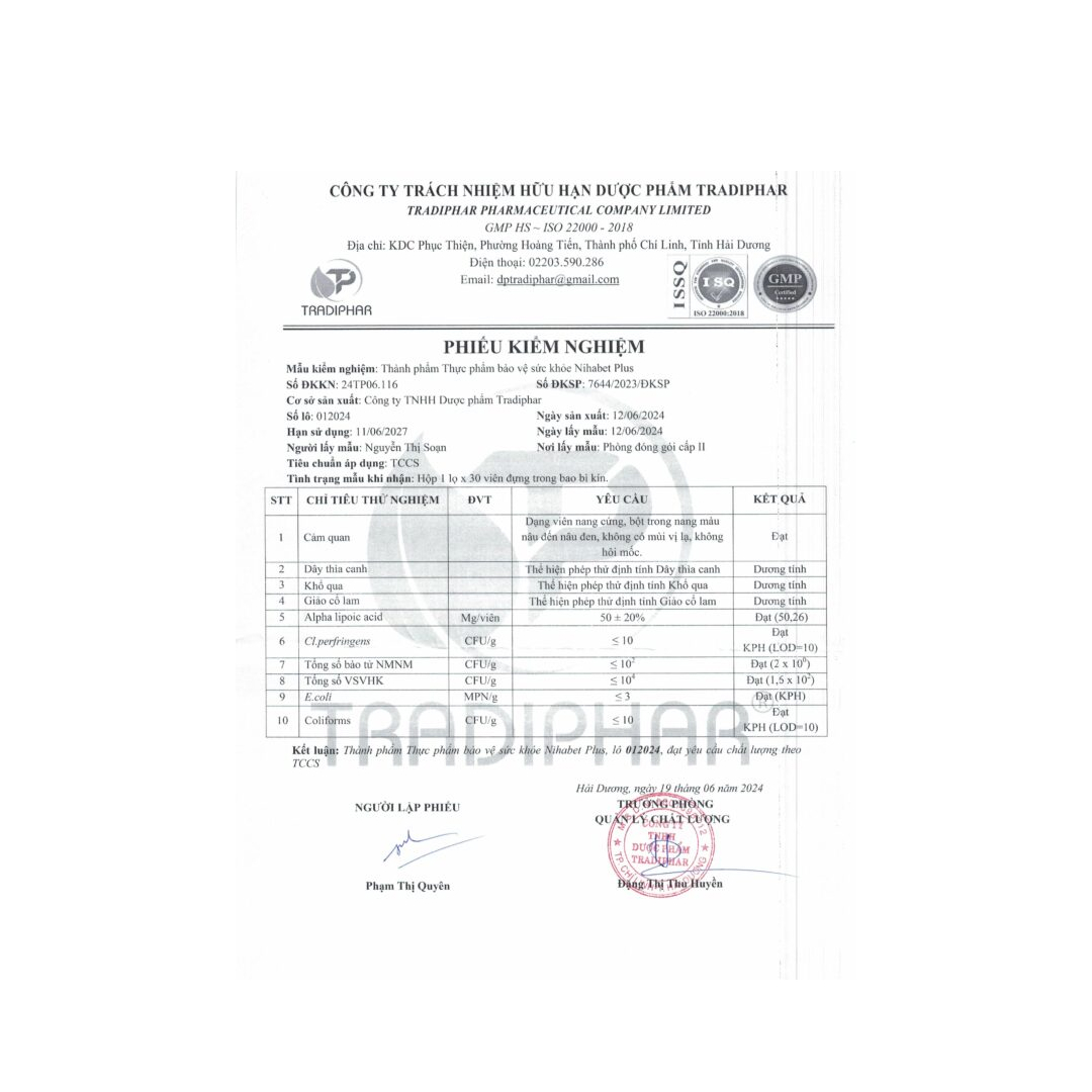 NIHABET PLUS là sản phẩm hỗ trợ cải thiện chỉ số đường huyết dành cho người lớn, chứa các thành phần tự nhiên lành tính và hiệu nghiệm như cao khô Dây thìa canh, Khổ