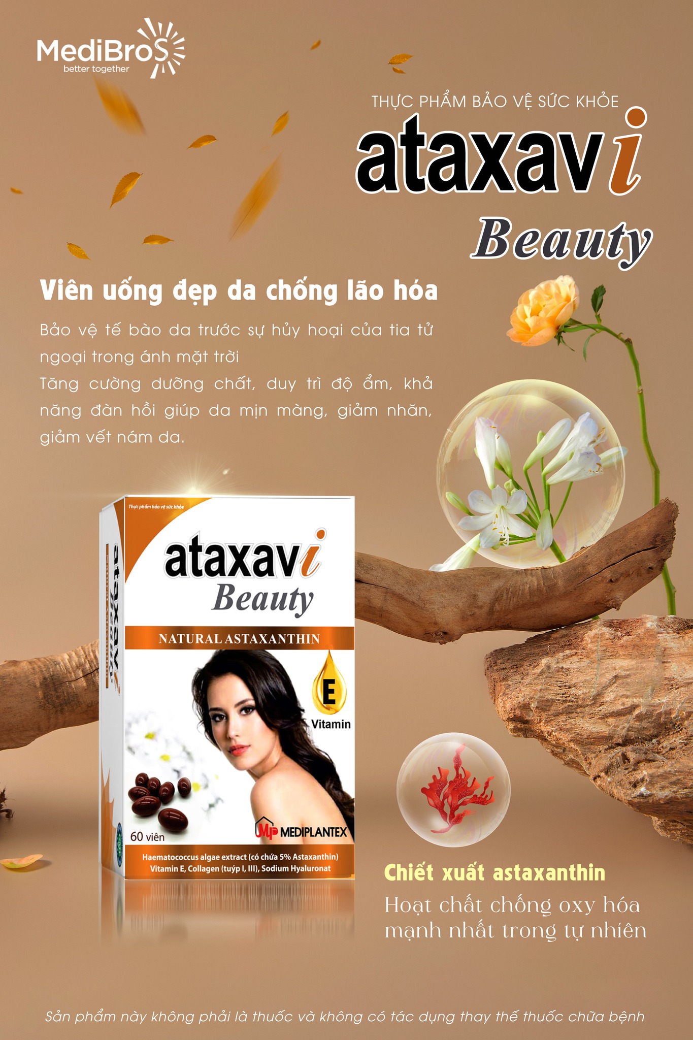 Làn da sáng mịn, căng tràn sức sống không còn là mơ ước xa vời nhờ Viên Uống Đẹp Da Ataxavi Beauty! Chiết xuất Astaxanthin từ vi tảo lục Nhật Bản là một trong những chất
