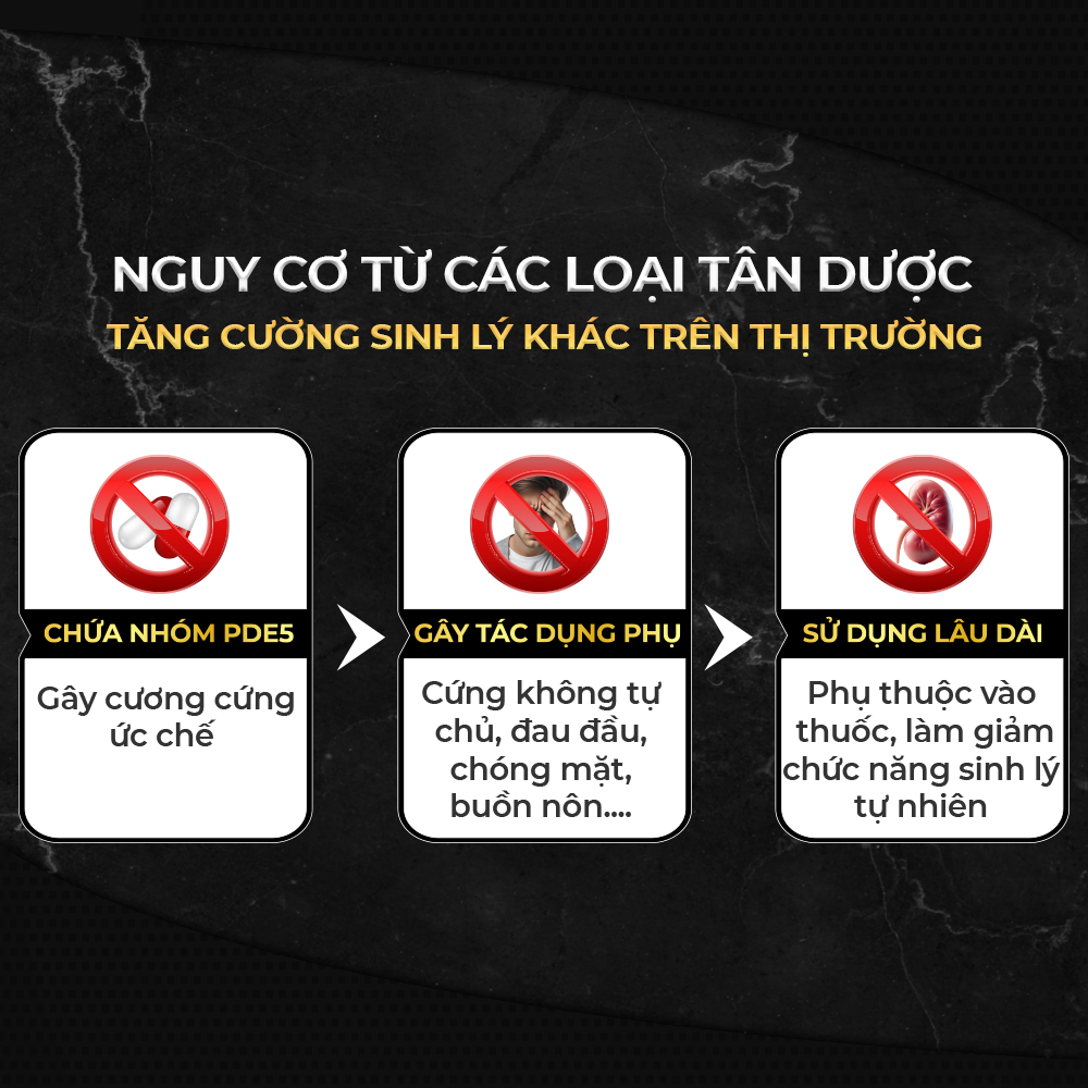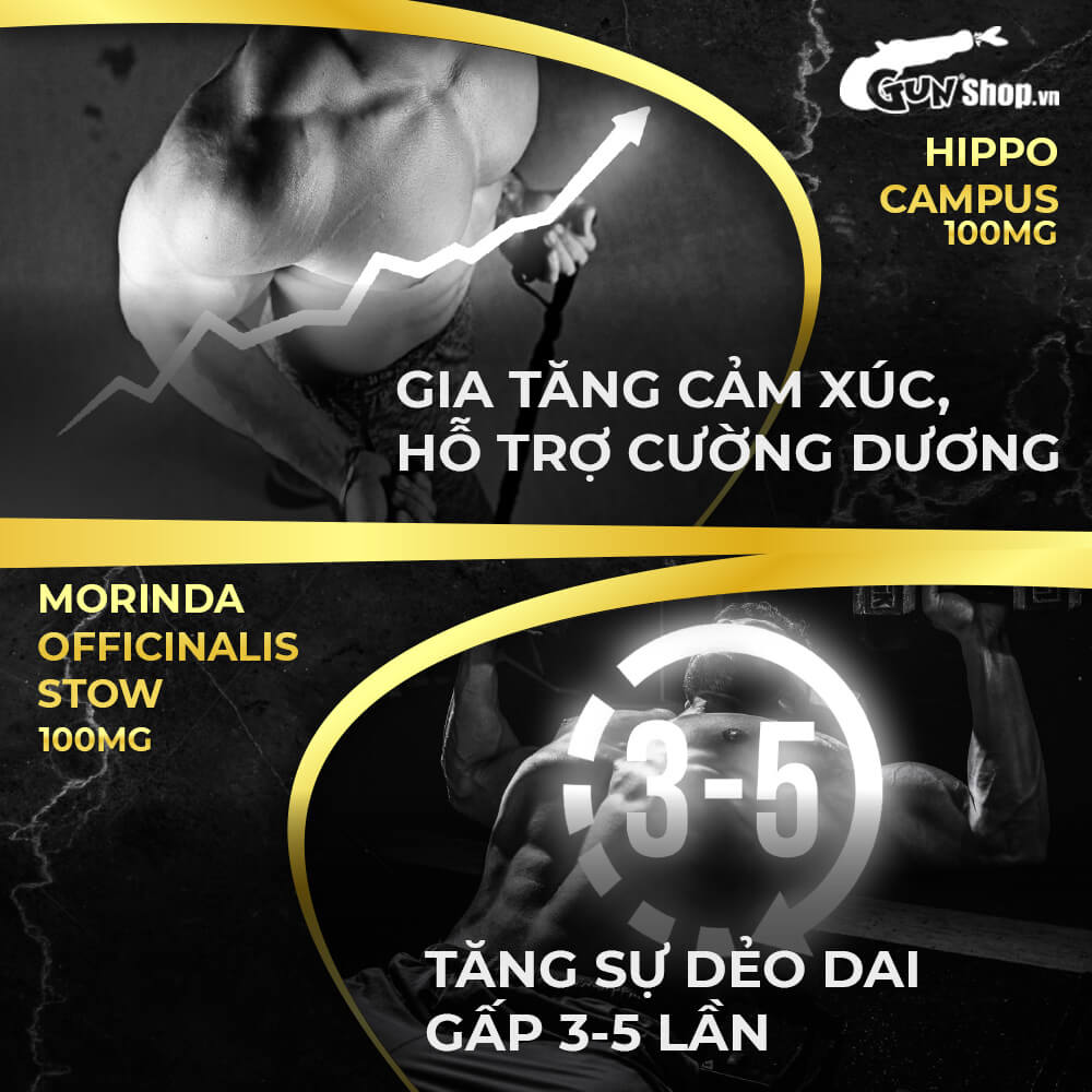✪ Thành phần: Eucommia ulmoides; Hippocampus; Morinda Officinalis Stow, Eurycoma longifolia, Herba Epimedii, Clemmy Chinensis Tortoise, Balanophora. Talc, Magnesium Stearat, Nipazin, Nipazol, Polyvinyl Pyrrolidon, Lactose, Ethanol 96%.
