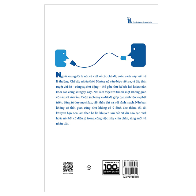 [ThaiHaBooks] Khi ở ngoài kia người ta nói và viết về đủ các thể loại chủ đề, cuốn sách này về lẽ thường. Chỉ bấy nhiêu thôi. Nhưng nó cần được viết ra vì đặc tính tuyệt vời đó – cùng sự chủ động – thứ gần như đã bốc hơi hoàn toàn khỏi các công sở ngày nay. Nơi làm việc trở thành một không gian vô cảm và rối rắm. Cuốn sách này ra đời để giúp bạn sinh tồn – và phát triển bên trong đó – bằng tư duy mạch lạc, viết thấu đạt và nói rành mạch.