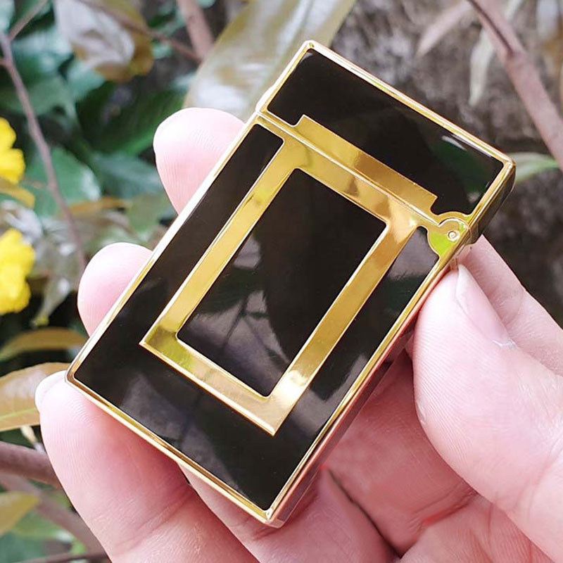 ✨Vỏ Hột Quẹt Bật Lửa Ga Đá D upon Sơn Mài Đen Viền Vàng Ô Chữ Nhật D-151V