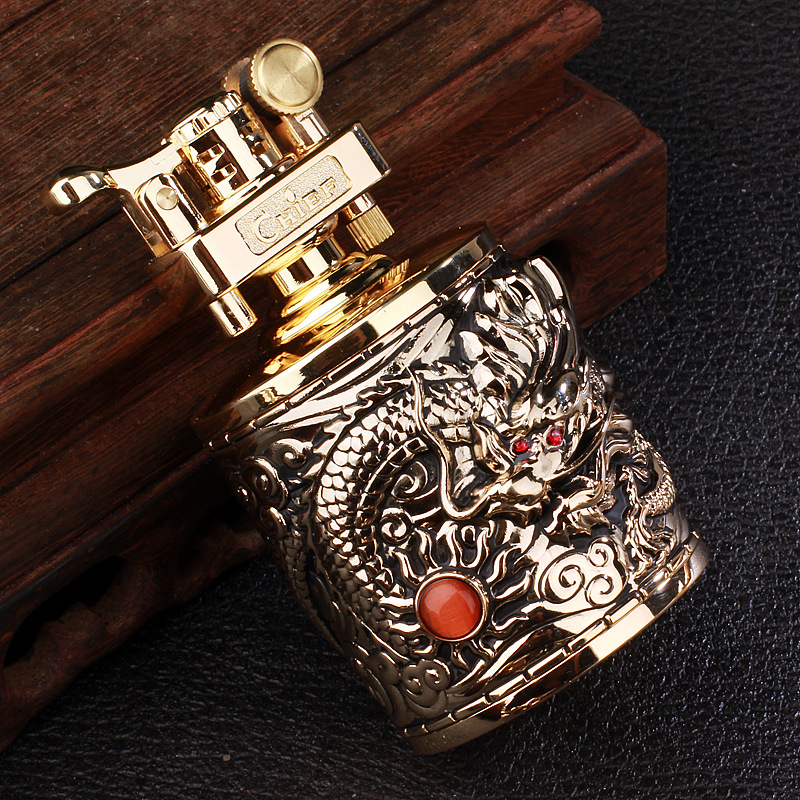 Hộp quẹt bật lửa cối xăng đá đá để bàn Chief CF206 rồng cuộn ôm ngọc #batluadep #batluaxang #batlua