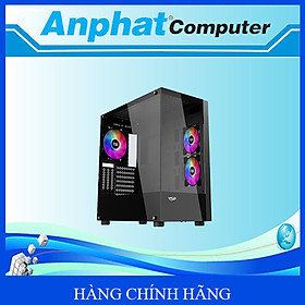 - Khung thân SPCC 0.5T sơn phủ đen - Kích thước nguồn ATX - Kích thước MB ATX - Mặt trước Kính cường lực - Mặt trên Vỏ bọc từ - Mặt trái Kính cường
