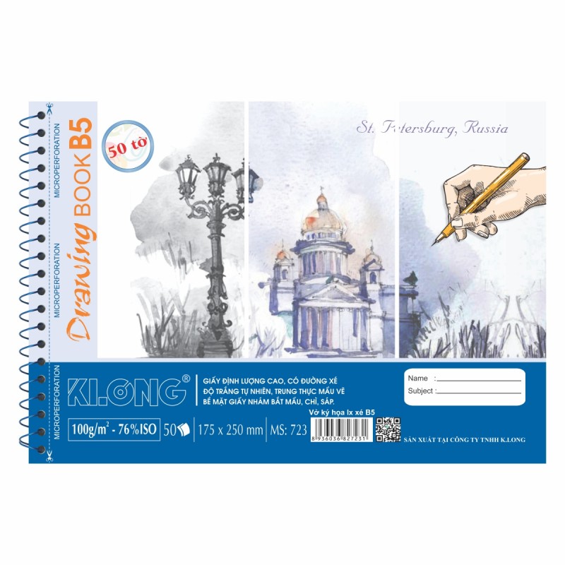 ✨Vở vẽ ký họa lò xo xé B5 100/76 50 tờ ms 723