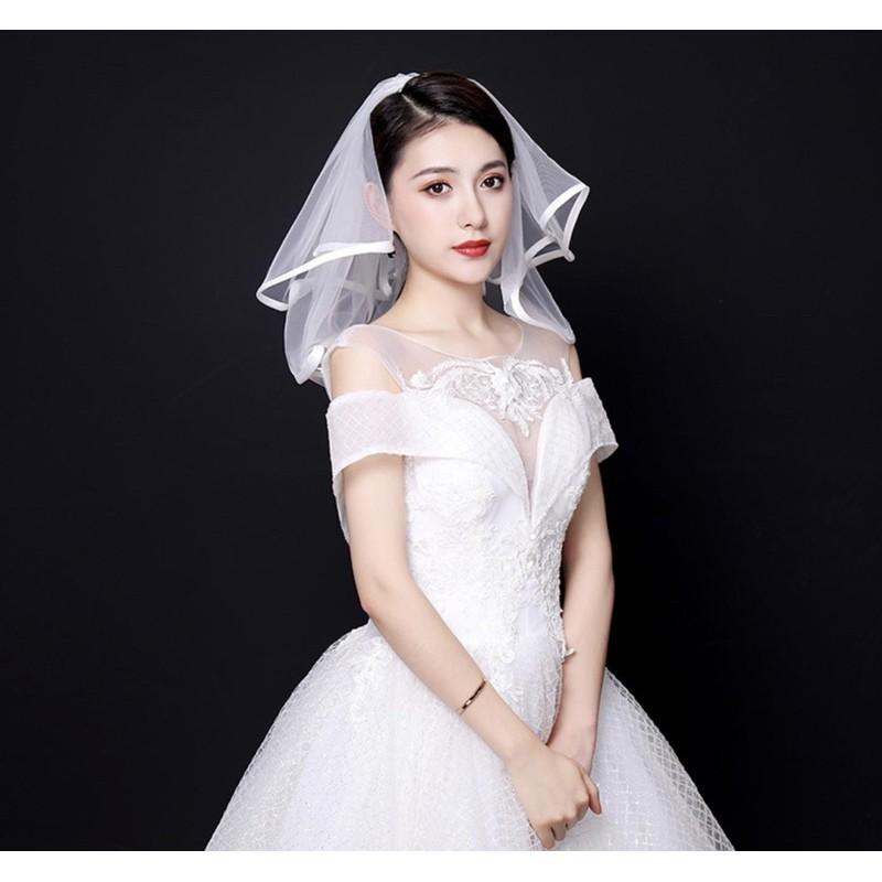 Mua tại TiktokVoan cài tóc cô dâu ngắn ngang vai hai lớp voan trơn trắng viền vải phi bóng giangpck mẫu voan cô dâu mới 10/2020