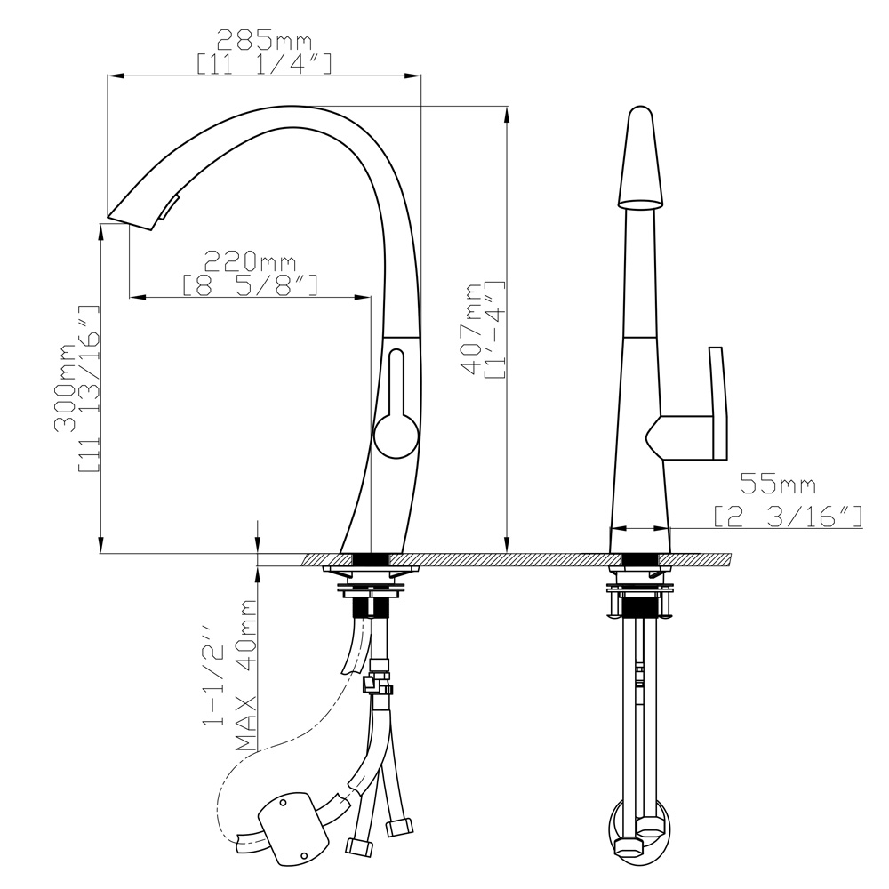 Mã sản phẩm: Ponte Chrome – Hình dáng: Vòi thiết kế bo tròn, đầu vòi cong. Một tay vòi nằm ngang – Chức năng: Nóng lạnh + Rút dây + Đầu vòi khớp xoay +