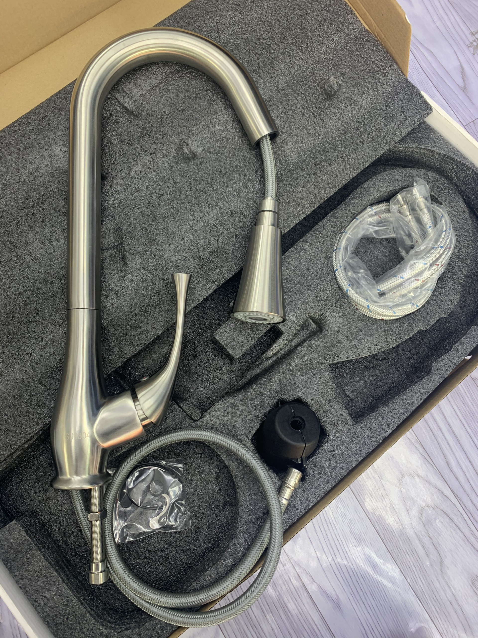 Vòi rửa bát nóng lạnh đầu dây rút, gồm có 2 lựa chọn như sau: Mẫu 1. Mã vòi dây rút R02H, chất liệu inox mờ bền bỉ (màu inox) Mẫu 2. Mã vòi dây