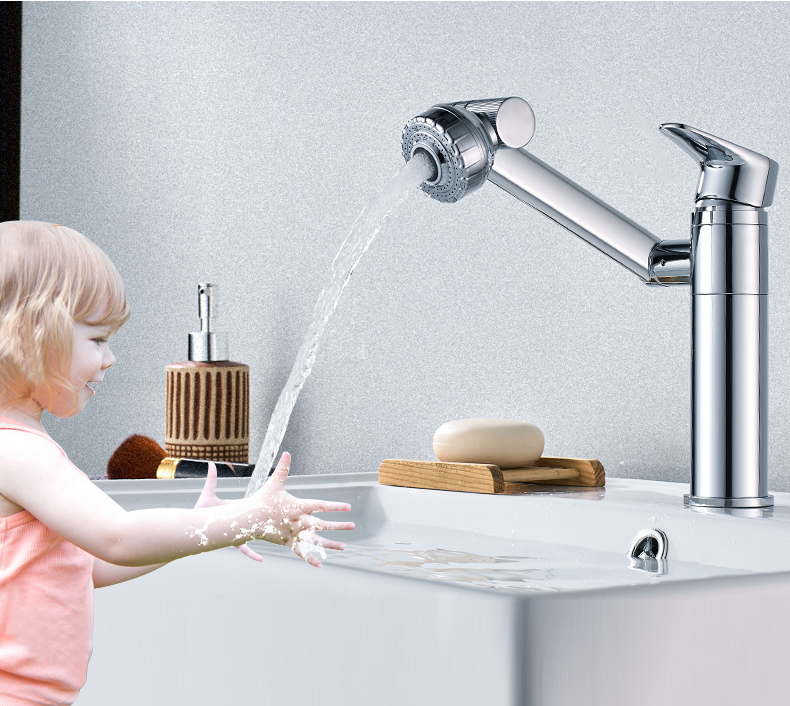 Vòi rửa mặt Lavabo cổ xoay 720 độ đa chiều, củ đồng, thân ngắn, mạ Crom, điều chỉnh nhiều chế độ tia nước Minh House