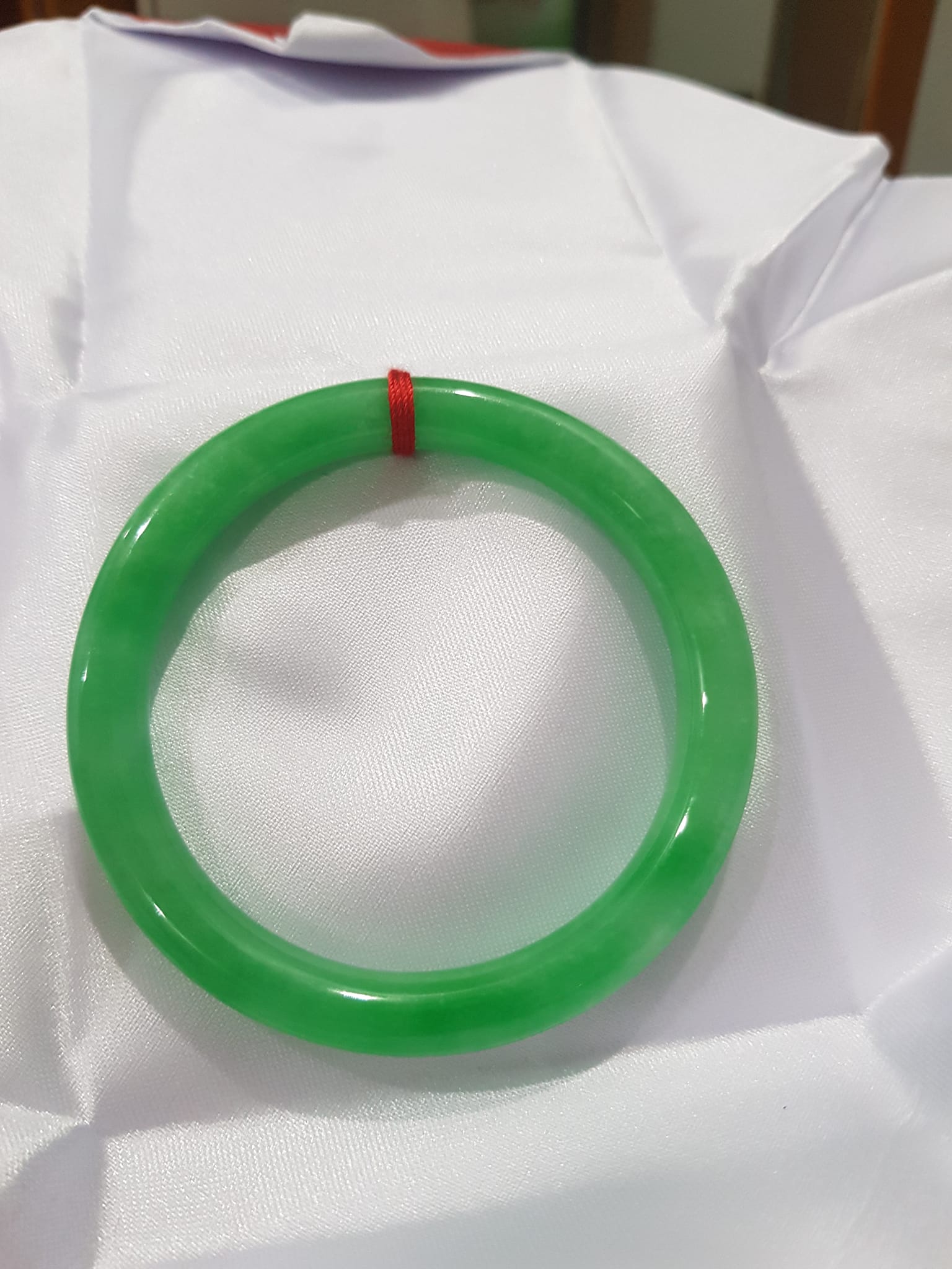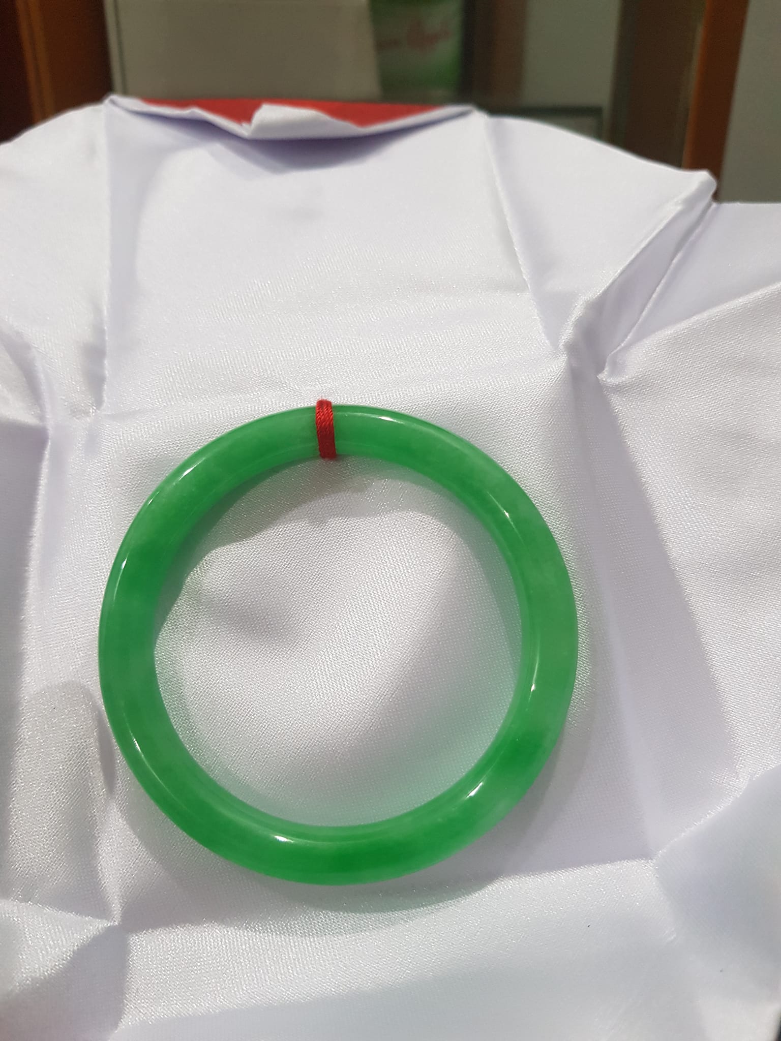 Vòng cẩm thạch Đ Lý 52mm x dầy 7,8mm màu xanh lá tươi hợp Nữ mệnh Mộc mệnh Hỏa 52kg - 56kg đeo ạ