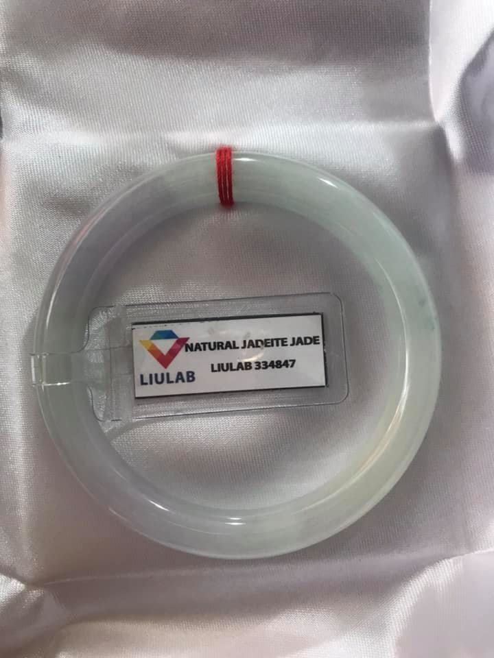 ✨VÒNG CẨM THẠCH TỰ NHIÊN TRẮNG TÍM SỊN 50mm x Dầy 8mm KÈM GIẤY KIỂM ĐỊNH LIULAB 334847 MÀU TRẮNG LAM TÍM NHẸ 1 BÊN ĐIỂM XANH NHẸ ĐẸP LẮM NỮ 50Kg - 55kg ĐEO ĐẸP Ạ