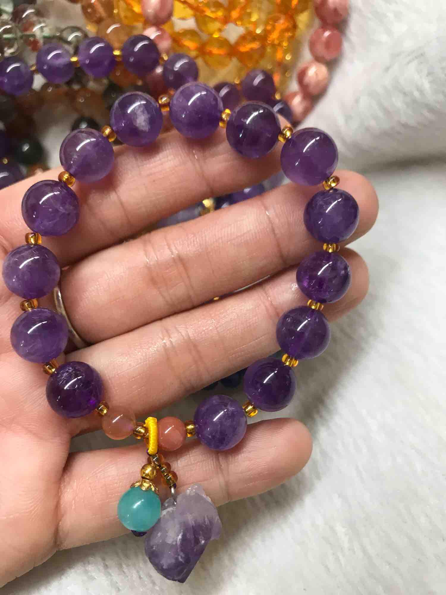 ✨VÒNG ĐÁ THẠCH ANH TÍM KIỂU KẾT VỚI VIÊN ĐÁ THẠCH ANH TÍM ĐEO TAY XINH XẮN 10MM NỮ MỆNH HỎA THỔ