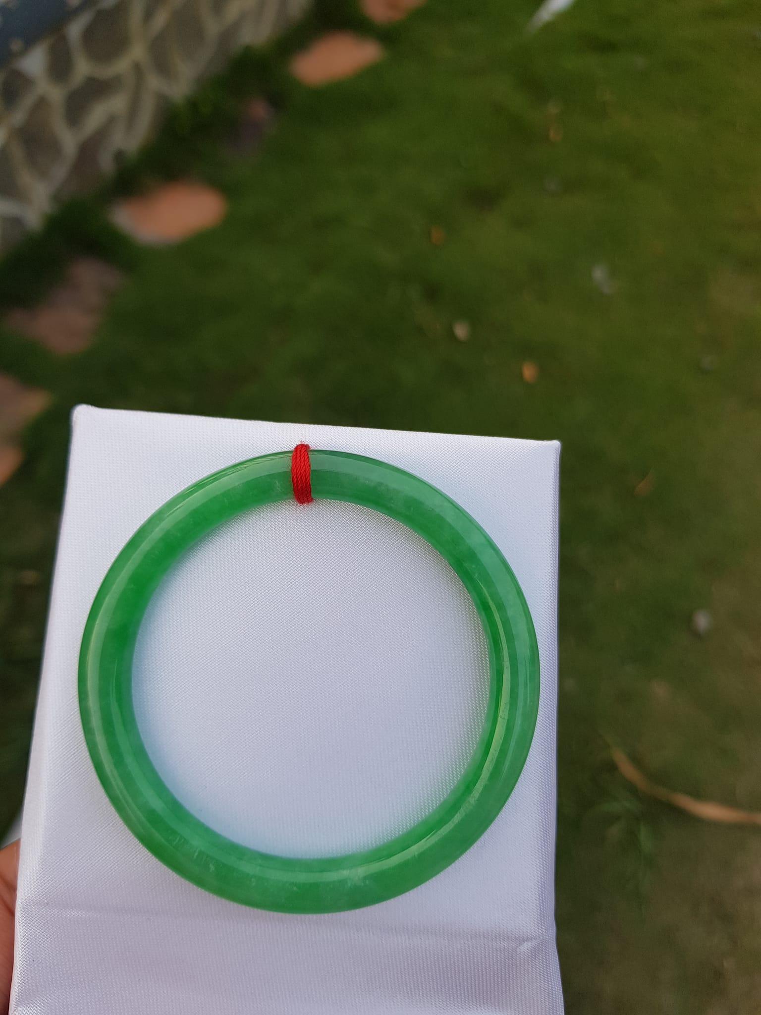Vòng cẩm thạch Đ Lý 52mm x dầy 7,8mm màu xanh lá tươi hợp Nữ mệnh Mộc mệnh Hỏa 52kg - 56kg đeo ạ