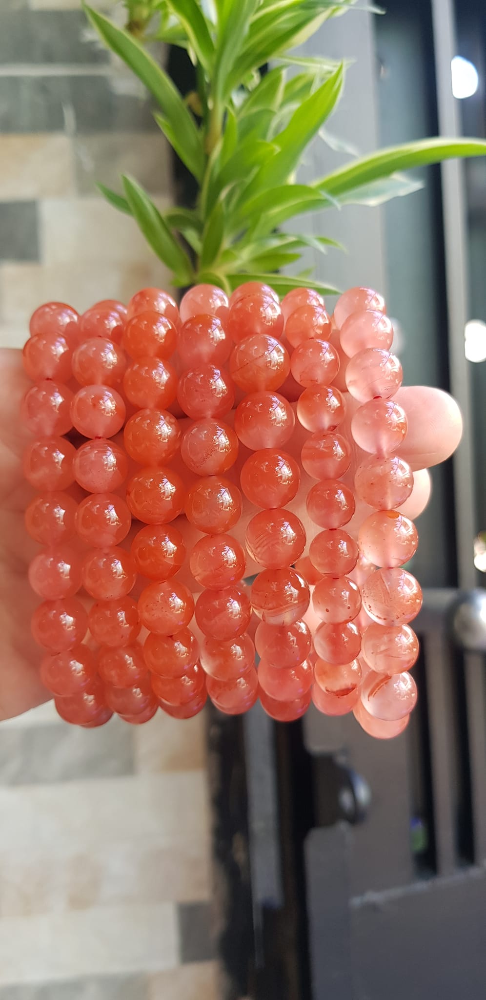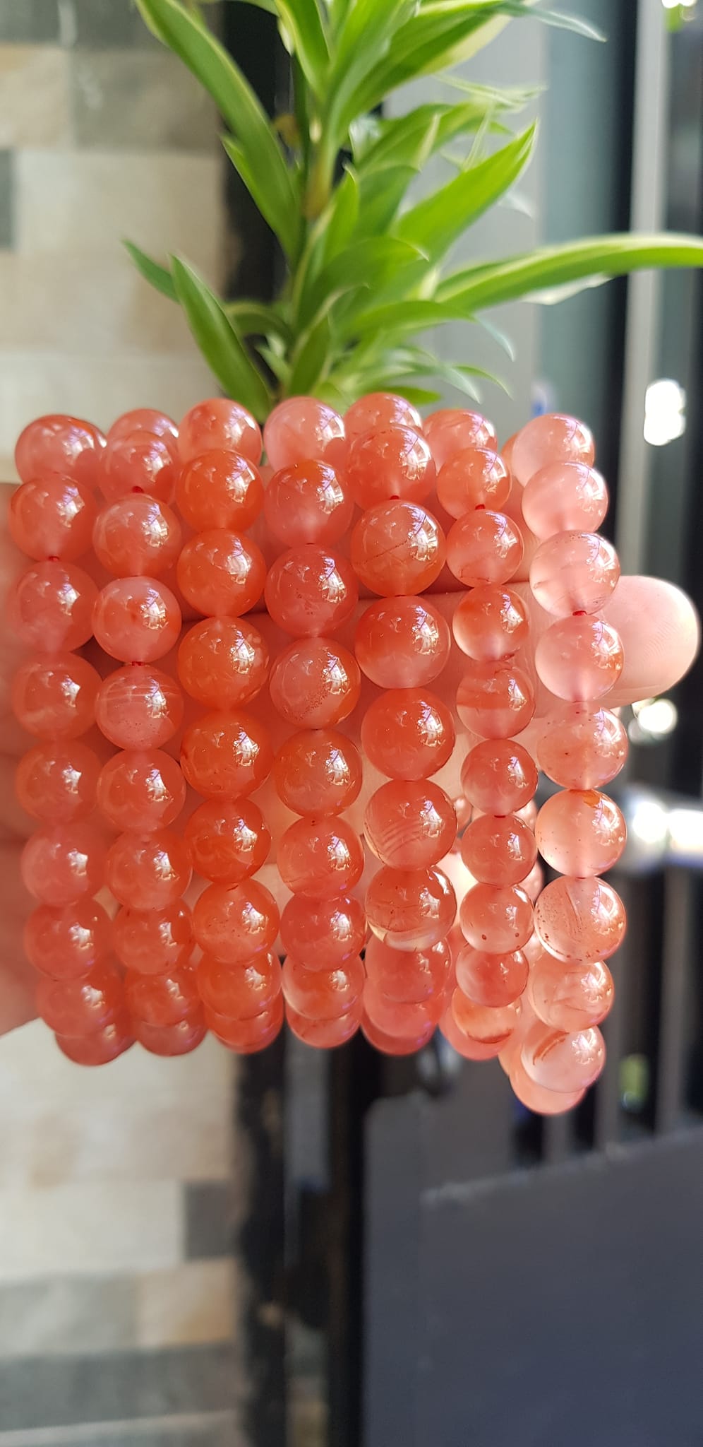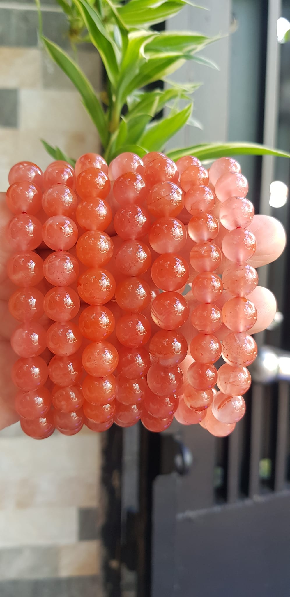 ✨Vòng đeo tay nữ chuỗi mới đá mã não hồng cam bóng mượt đẹp size vòng hạt 10mm nam nữ mệnh hỏa mệnh thổ đeo ạ