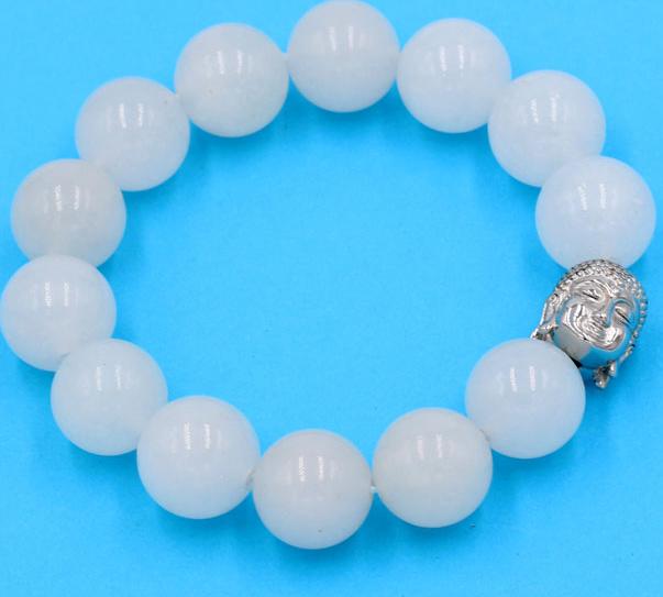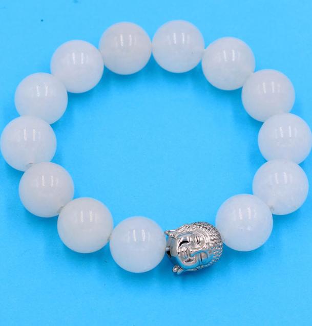 ✨Vòng đeo tay thạch anh trắng 14 ly - cẩn hạt Như Lai inox trắng VTTNLT14 - hợp mệnh Kim, mệnh Thủy