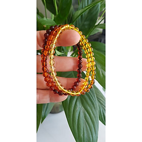 Vòng Hổ Phách tự nhiên đeo quấn tay kiểu 3 vòng Size hạt 5mm 3 màu tam hợp màu vàng anh cam đỏ đậm phối tay các Chị Em Nữ lên tay đeo rất xinh