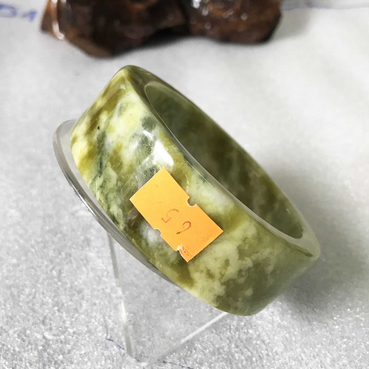 Vòng tay Nữ Đá Cẩm Thạch mới TR Lý 57 mm x cọng 7,5mm Màu Xanh lý tươi trắng 2 bên đều vòng đẹp Nữ 55kg - 64kg đeo đẹp món quà tặng chính mình