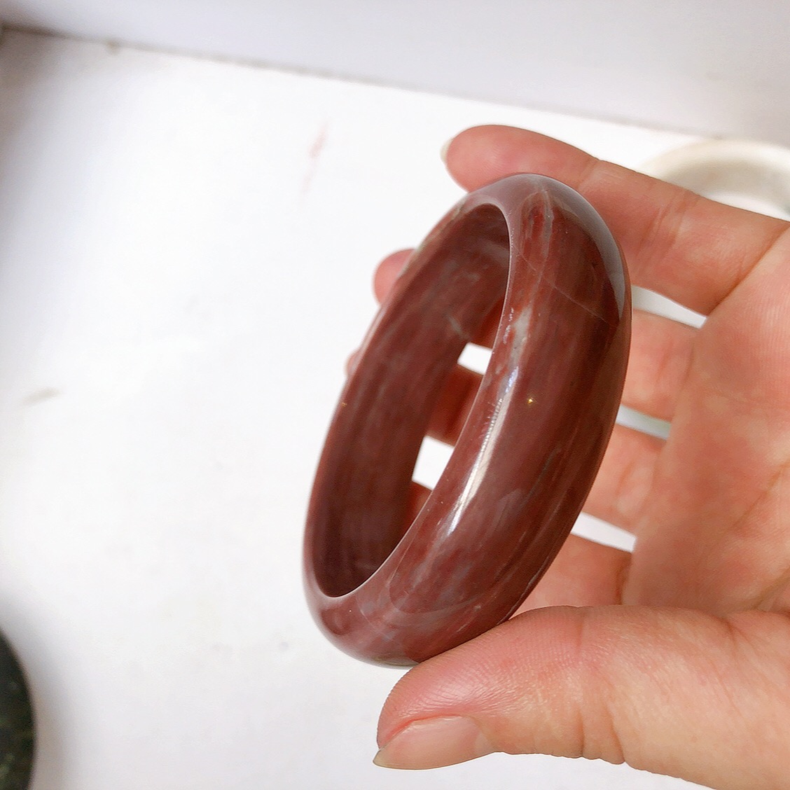 Vòng tay Nữ Bản Hẹ Mới Đá Mã Não Bông Tuyết Hồng nhẹ trắng trong bóng quá đẹp luôn ạ Ni 53mm x Cao 11mm x dầy 7mm Nữ Cân nặng 52kg - 55kg đeo