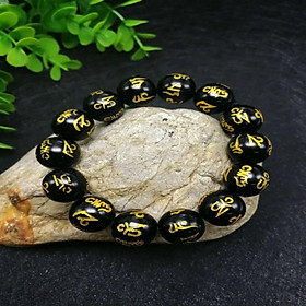 ✨VÒNG TAY ĐÁ MÃ NÃO ĐEN KHẮC OM MANI PADME HUM 16 ly