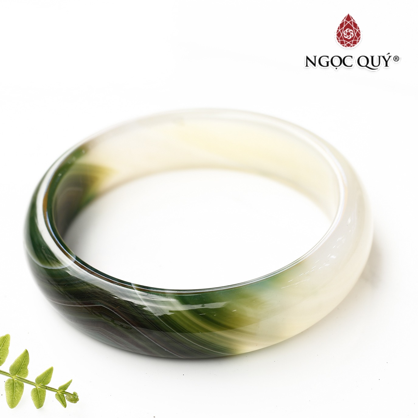 Vòng nguyên khối bản cọng tròn đá mã não xanh - Hợp Mệnh Mộc & Hỏa [ Ngọc Quý ]