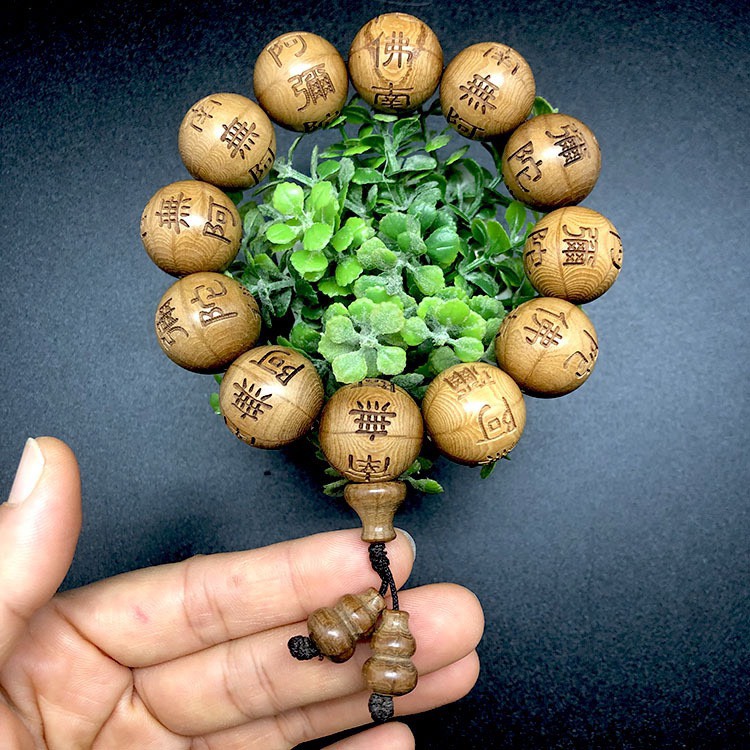 ✨VÒNG TAY GỖ LỤC ĐẠO MỘC LIÊN HOA KHẮC NAM MÔ A DI ĐÀ PHẬT 13 hạt 18ly TẶNG HỘP ĐỰNG